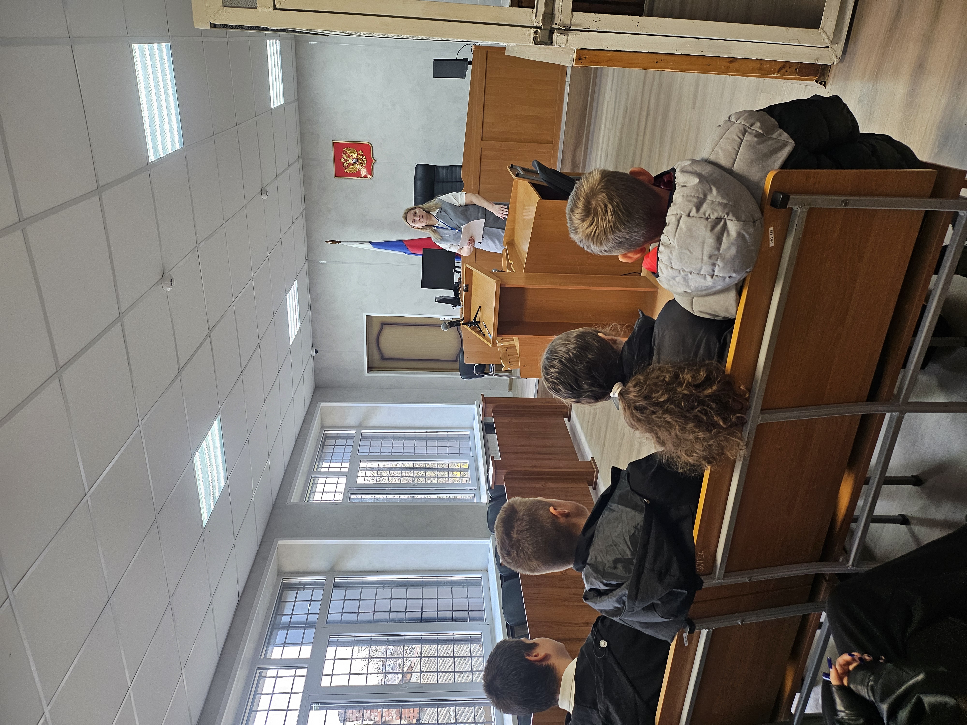 21 ноября 2025 года ученики 8 класса МБОУ «СОШ №2» МО ГО Красноперекопска Республики Крым в сопровождении педагога Зайцевой Л.В. посетили Красноперекопский районный суд Республики Крым. Главной целью экскурсии было формирование уважительного отношения несовершеннолетних к закону, судебной системе. Знакомство с судом началось с холла здания суда, где каждый из ребят прошел через рамку поста судебных приставов по обеспечению установленного порядка деятельности судов, где судебный пристав по обеспечению установленного порядка деятельности судов Стожок В.А. ознакомил школьников с Правилами пропускного режима. Ребята побывали в зале судебного заседания, в котором рассматриваются гражданские, уголовные и административные дела. Администратор суда Алексеева О.А. рассказала и показала ребятам, где во время заседания располагается судья, государственный обвинитель (прокурор), истец и ответчик, потерпевшие, свидетели, а также, где содержится подсудимый, находящийся под стражей, ответила на вопросы ребят. Для ребят также был проведен правовой урок в виде викторины «Вопрос-ответ» по Конституции РФ, по семейному и трудовому праву, ребята активно участвовали в викторине. Кроме того, ребята совместно с педагогом и администратором суда посетили конвойное помещение, в котором находятся лица, содержащиеся под стражей. Администратор суда рассказала ребятам о профессиях в судебной системе, более детально остановилась на работе курьеров. Каждый из ребят смог примерить на себе роль курьера по регистрации исходящей корреспонденции (курьеров 1-го разряда ЕТКС). Встреча получилась насыщенной и интересной и наверняка ребятам будет о чем поразмышлять, когда встанет вопрос о выборе будущей профессии. Пресс-служба Красноперекопского районного суда |